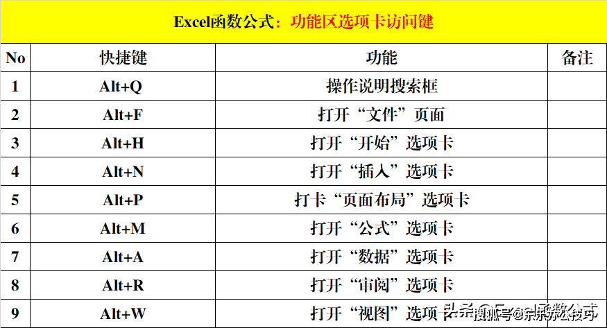 二、Excel快捷键:功能区选项卡访问键(9个)。