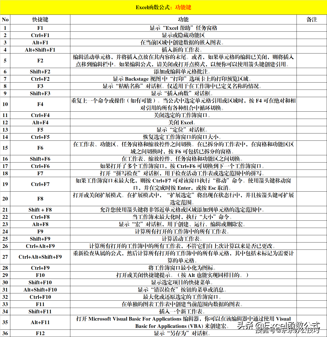 八、Excel快捷键:功能键(36个)