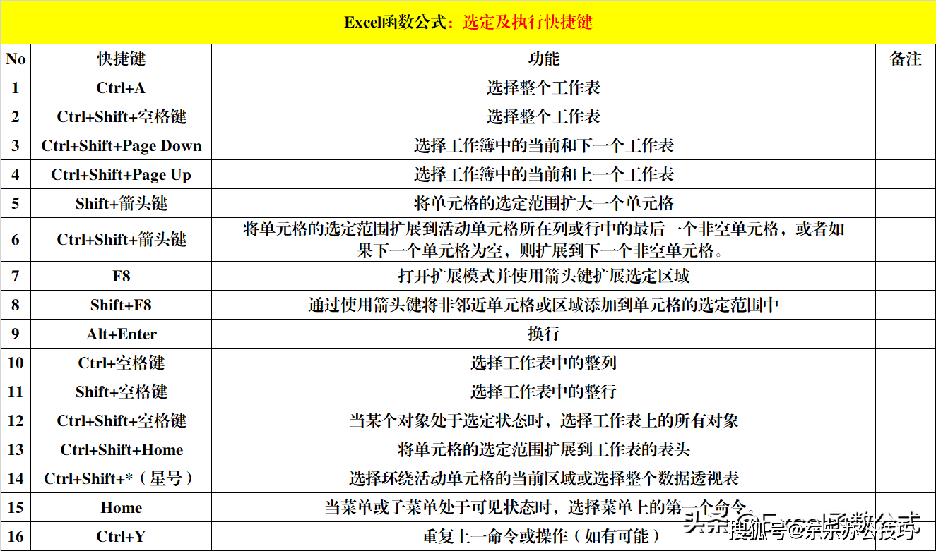六、Excel快捷键:选定及执行快捷键(16个)。