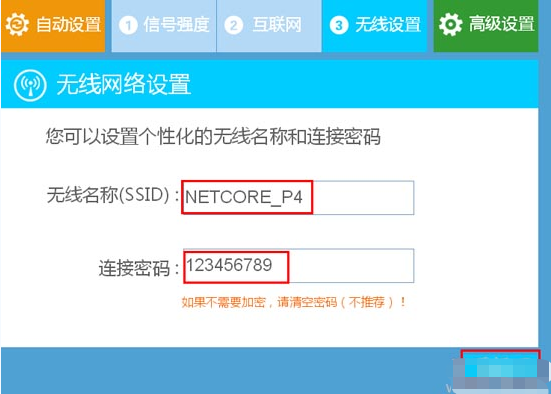 注意问题:(1)、“无线网络标识(SSID)”就是无线网络名称(wifi名称),建议用字母、数字设置,不要使用中文汉字。(2)、这里的“密码”指的是无线网络(wifi)密码,建议用大写字母+小写字母+数字+符号的组合进行设置,并且密码长度不得小于8位。