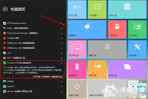 1、测试CPU,也可以在性能测试中找到对应的测试功能,其中“Prime95 (CPU压力测试软件)”功能就可以帮助大家进行CPU的测试,如下图所示: