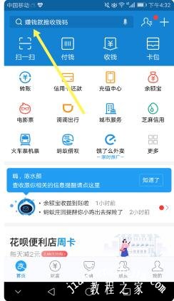 1、打开手机支付宝,找到支付宝应用界面上方的搜索框,并点击进入搜索模式。