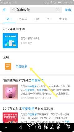 2、在搜索框中输入“年度账单”,并shu点击右侧的搜索,打开应用栏下的“年度账单”。
