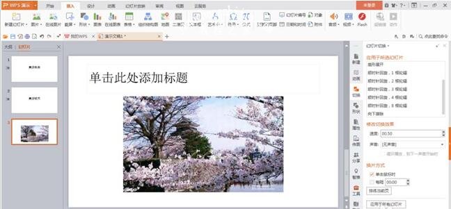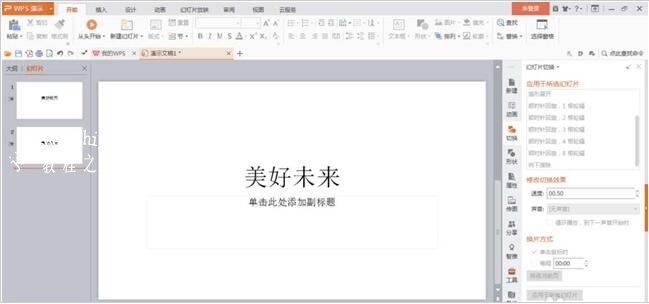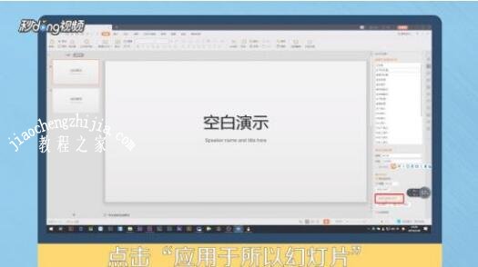 3点击“应用于全部幻灯片”,点击后对幻灯片的切换方式和时间间隔进行调整,然后根据需要设置切换的时间。
