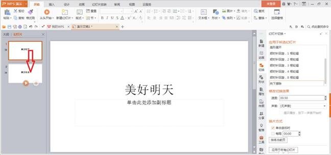 5、这样,两张幻灯片就相互移动位置,相互调换,调整完毕。