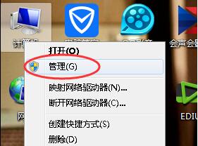 1.以win7系统为例说明,进入系统桌面,鼠标右键桌面上的计算机图标,选择管理选项,进入下一步。