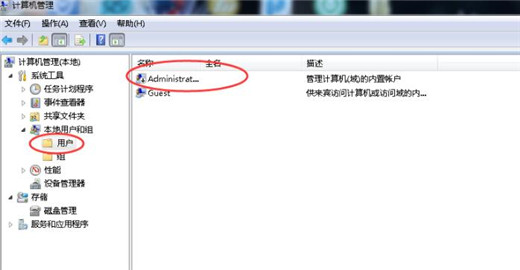 3.接着点击用户,然后找到右侧界面中的administrator用户,进入下一步。