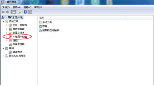 2.在弹出的管理界面中点击左侧界面的本地用户和账户组。