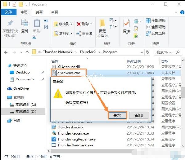 找到ThunderBrowser.exe文件,(重复上个步骤)复制ThunderBrowser.exe备份之后,删除ThunderBrowser.exe;新建txt文件,并重命名为ThunderBrowser.exe.