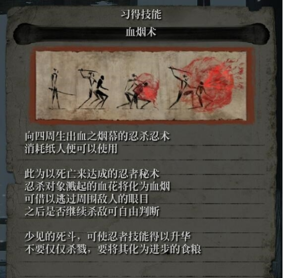 可以向四周生出血之烟幕,消耗6个纸人即可发动。