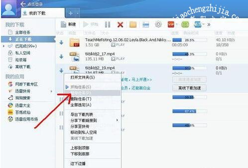迅雷下载速度慢有时是因为同时下载的资源太多,如果大于3个速度肯定变慢。应该先暂停几个下载任务(右击下载任务,选择暂停下载即可),只留着2--3个继续下载,等下载完了再开始其它的(右击已暂停的任务,在下拉菜单中选择开始任务即可)。
