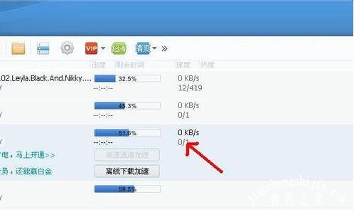 选择优良的下载资源,能大大提高下载速度。否则资源不稳定,下载一会儿停一会儿,很影响速度。例如下载电影时,尽量选择下载资源多的,这样能保证下载速度。如下图红色箭头所示没有资源,迅雷就停止下载了。