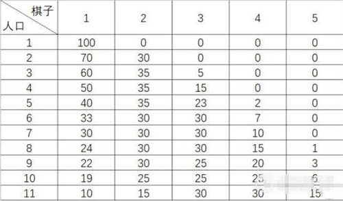 这是各人口的搜子概率,将鼠标移到人口图标上就能看到(11人口是10人口加高等级罪犯)。由于大部分阵容的核心棋子都是3~4费的,所以往往都是先升人口,升到7~8人口再去搜子。当然也可以灵活变通,如果急需一个2费又不想错过3费,我们在5人口时搜索效果是最好的。
