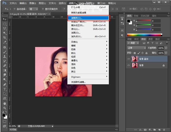 2、点击上方的滤镜——滤镜库,打开滤镜库;
