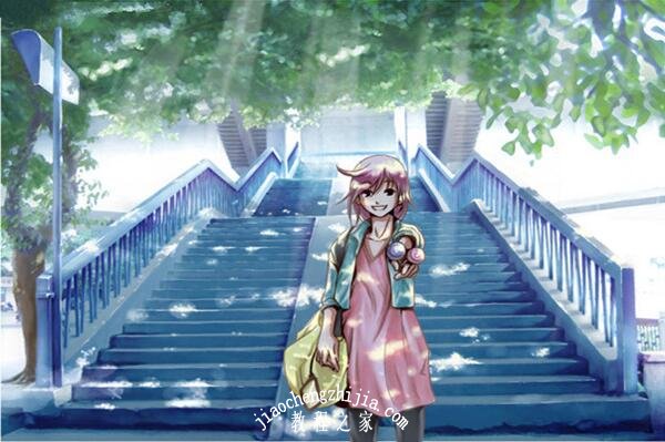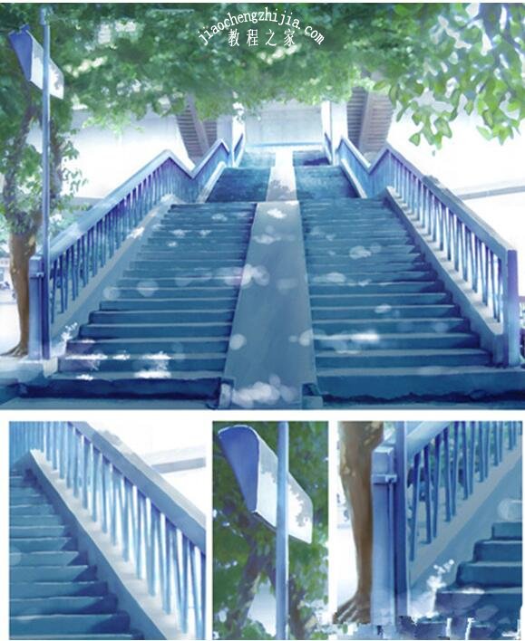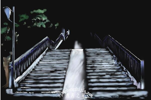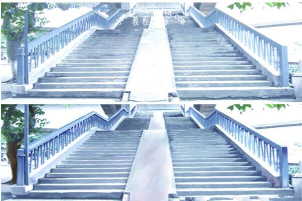 注意画面的细节处理,再处理一下台阶上的阴影。