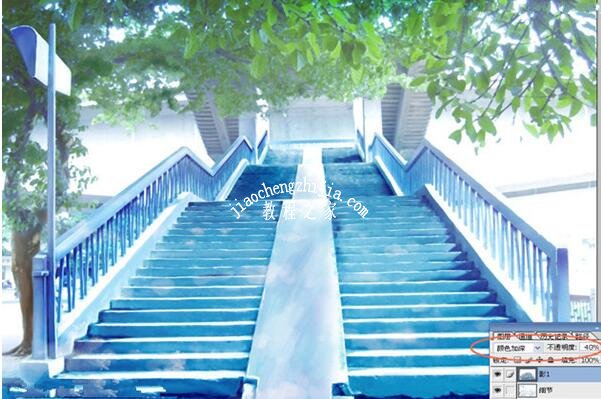 9、然后在图层属性那里选择颜色加深,不透明度调到40%。