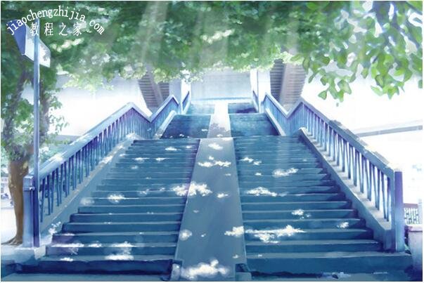13、画出阳光照耀下的斑驳影子,强调一下扶手和楼梯的细节部分,这个底图的绘制就完成了。