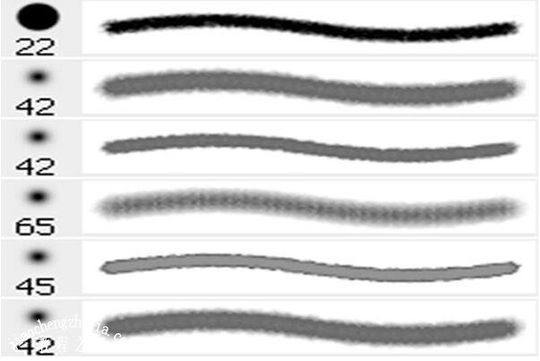 接着用PS自带的“湿介质”画笔画出边缘,可以选择的画笔如下。
