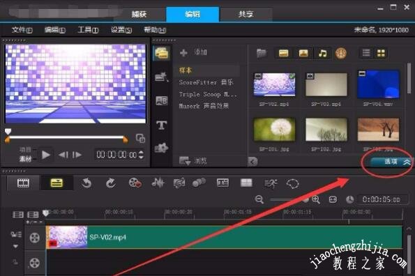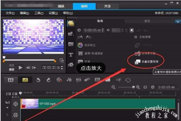 7、在会声会影中,如何在预览窗口中显示标题安全区域?