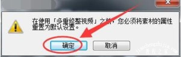 4、然后将素材属性重置为默认设置,点击【确定】,
