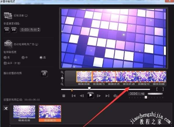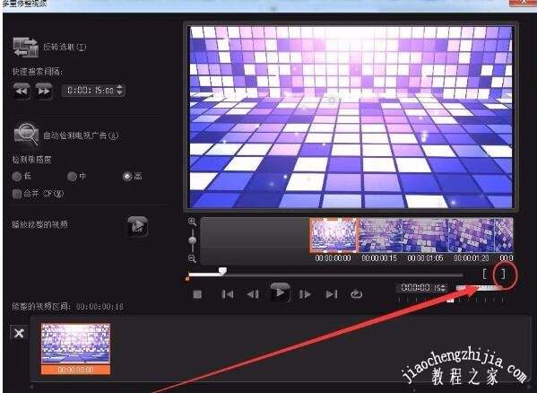 5、多重修整视频窗口中,用开始标记选择要保留视频的起始帧,