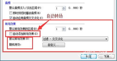 答:只需单击”设置“|”参数选择“命令,弹出”参数选择“对话框,点击“编辑”,在转场效果栏中,勾选“自动添加转场效果”,转场效果可以默认为一种,也可以选择随机特效。