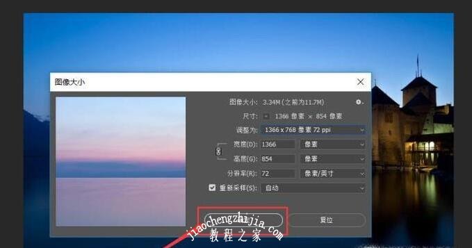 3.查看对话框。在【图像大锌对话框中,详细列举了照片的像素大小和文档大小的参数。