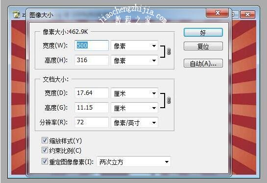 4.修改图像大校在对话框中将像素大小的宽度调整为你需要的大小,如“500像素”, 设置好后单击【确定】按钮。