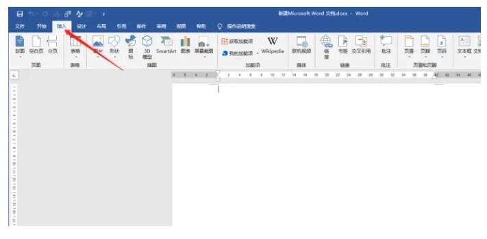 2.接着再新建一个用来合并的word文档并打开,点击上方菜单栏中的【插入】选项。