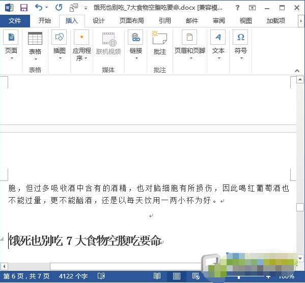 3、返回Word,就能看到选中的Word文档已经插入到指定的位置了,如果上一步中同时选中了多个文档,那么,“插入文件”对话框里最上面的文档会被最先合并。