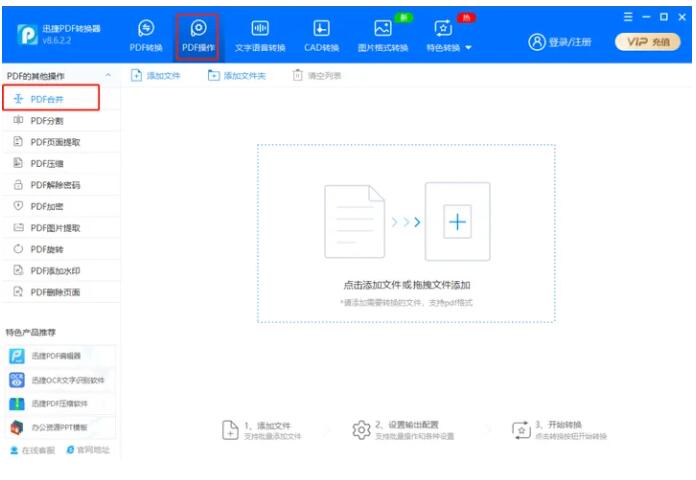 1.打开【迅捷PDF转换器】,选择【PDF操作】选项下的【PDF合并】