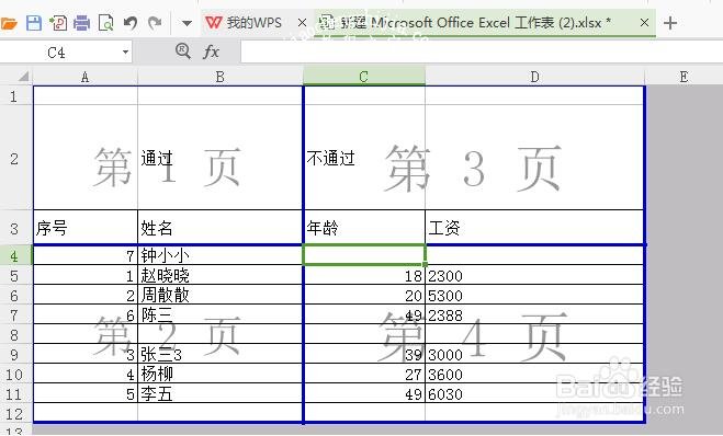 6、可以看到的当前的单元格被分成了四块的位置。