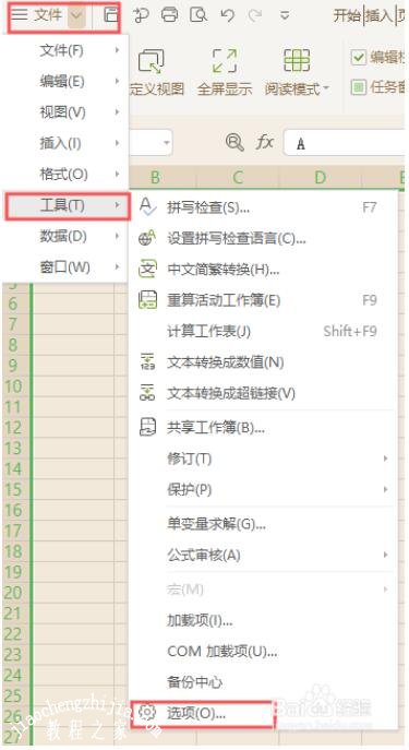 选定我们需要打印的区域,点击“文件”里面的“工具”并且点击“选项”按键进入选项主页;