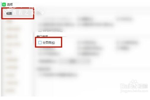 4进入选项主页后,我们在“视图”的右侧“窗口选项”中,将已经勾选的“分页符”取消选择并点击确定即可;
