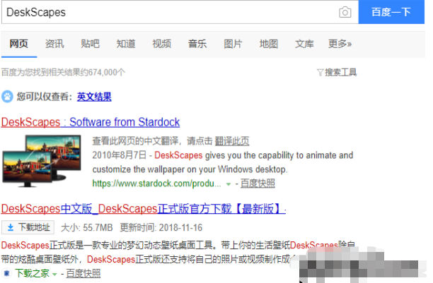1.进入win10系统桌面,打开浏览器,搜索并下载安装DeskScapes这款软件,进入下一步。