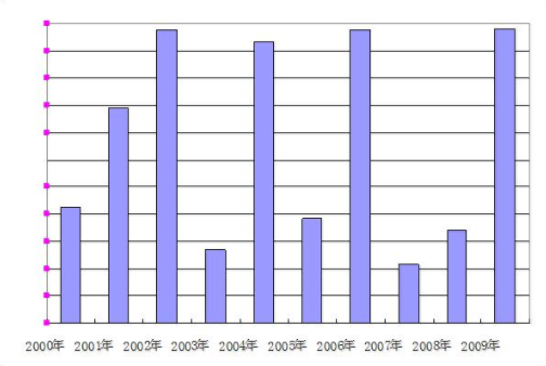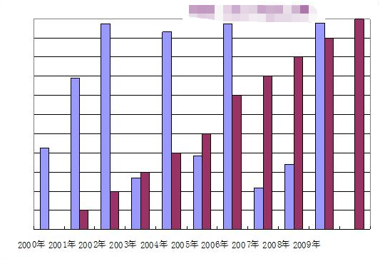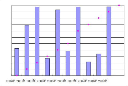 绘制柱子分割线:在图表上单击鼠标右键→单击“选择数据”→“添加”按钮→“系列名称”输入“柱子分割线”,“X轴系列值”选择K3:K12单元格 区域,“Y轴系列值”选择L3:L12单元格区域→单击“确定”按钮关闭“编辑数据系列”对话框→单击“确定”按钮关闭“选择数据源”对话框。复制准备好的分割图案→单击图表→“布局”选项卡→在“当前所选内容”组的“图表元素”下拉列表框中单击“柱子分割线”系列→《Ctrl+V》粘贴。