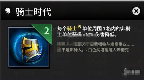 骑士时代骑士阵容的非必备天赋,因为该阵容只有三个非骑士单位,其中毒龙是很难享受到该buff,故收益并不是很高,可作为备选天赋。