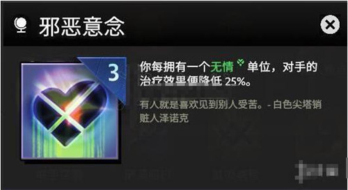 邪恶意念如有“失去天恩”则可以选择,可使对方的治疗量降低为0,但是要视其他七家的阵容而定,如果对手的治疗手段很少或是没有则不必选择。
