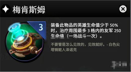 梅肯斯姆给前排的全能骑士或亚巴顿装备,增加阵容的回复。