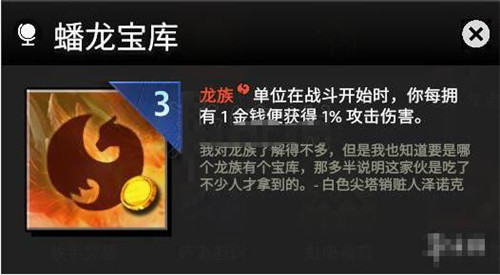 蟠龙宝库钱越多龙骑士的伤害就越高,提升的效果还是比较明显的,可以选择。