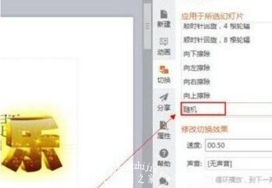 5、如图所示,我们点击箭头所指的“随机”这一项。