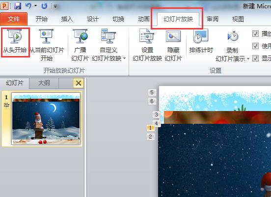 7、设置完成后,点击顶部菜单中的幻灯片放映,选择从头放映即可。