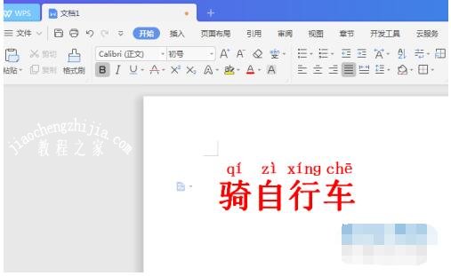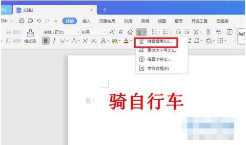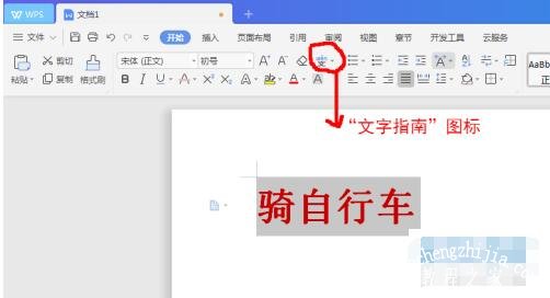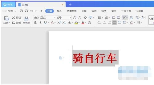 1. 首先,打开教育版WPS,新建一个文档,在其中任意打几个字并选中。小编这里以“骑自行车”这四个字为例。
