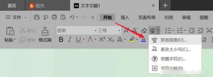 3. 然后在其下选项中点击“拼音指南”。