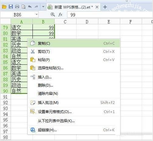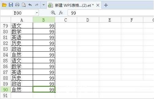 1、看在WPS表格中有2列90行数据,如果直接打印每页上只有窄窄的两列,那么我们怎么才能分栏打印哪。