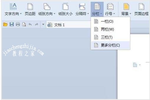 3、转到WPS文字中,点击页面布局,选择分栏,如果是分成一栏、两栏、三栏可以直接选择,如果要分成更多栏更多设置,可以点击更多分栏。