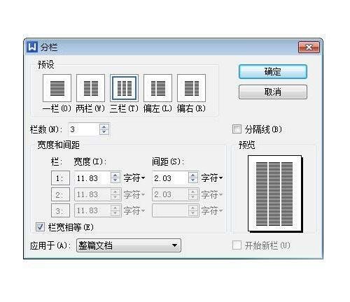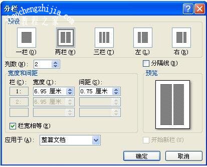 3、或选择更多分栏,弹出分栏对话框,在这个对话框中可以进行各种设置,如图所示。