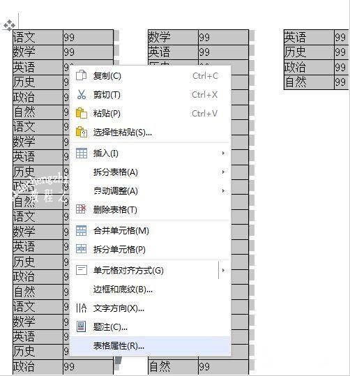 8、点击表格左上角的图标选中表格,双击图标或者在图标或者表格上右键单击,选择表格属性,可以修改表格样式