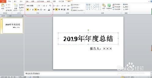2. 选中所要设置文字效果的文本,在任务栏中找到”开始“按钮并点击,找到字体一栏,选择所要修改的字体、颜色、大小等