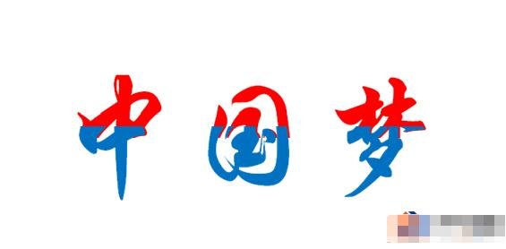 8、最后,把“中国梦”上下两部分通过微移重合,然后组合,就可以得到最终的“一字双色”效果了。